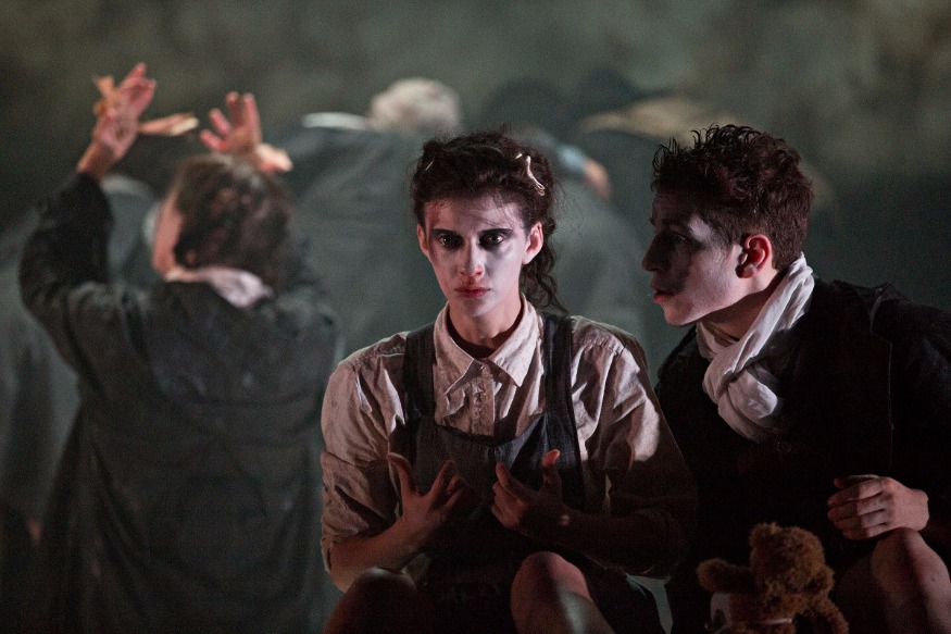« En 1940 », écrit Georg Kaiser, « un vapeur qui devait conduire au Canada des enfants de villes anglaises bombardées fut torpillé en pleine mer. » Sur cette donnée simple et tragique, le dramaturge allemand (1878-1945) imagine un drame d’un dépouillement absolu où se rejoue sous forme concentrée l’histoire de toute l’humanité. La pièce s’ouvre sur un effroyable naufrage. À l’aube, douze survivants sont découverts dans une unique embarcation : six garçons et six filles. Aucun ne paraît avoir plus de treize ans. Deux d’entre eux se distinguent. Ann serre contre elle un thermos de lait encore chaud. Allan a pensé à emporter son écharpe. Ils sont les premiers à se réveiller. « Allan et Ann » : leurs deux prénoms prononcés ensemble sonnent comme s’ils étaient « seuls au monde ». Et c’est sans doute au premier couple, Adam et Ève, plus encore qu’à Noé, survivant du Déluge, qu’ils songent tous deux en contemplant la mer.